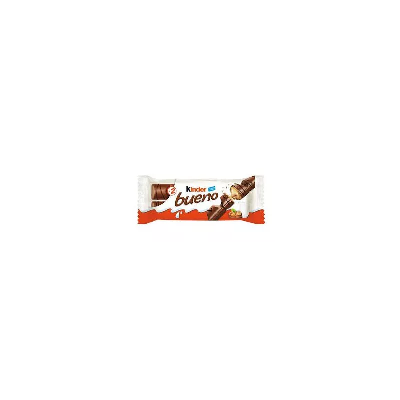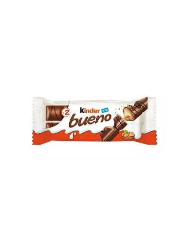 Kinder Bueno es un delicioso chocolate que combina la suavidad de su crema de avellanas con el sabor del chocolate con leche. Cada paquete contiene dos barritas ideales para compartir o disfrutar en cualquier momento del día. Cada bocado ofrece una textura crujiente y un sabor irresistible que encantará a niños y adultos. Este chocolate es perfecto para consumir como tentempié, después de una comida o como dulce capricho. Kinder Bueno es una opción muy demandada en tiendas de golosinas, comercio vending y venta online, con precios económicos y envíos rápidos.