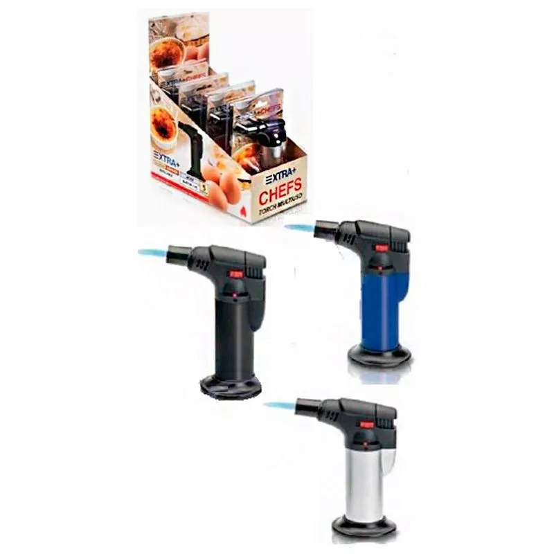 El Soplete de Cocina Extra es un encendedor potente y versátil, ideal para cocina, repostería, bricolaje y uso en productos para fumador. Su llama ajustable asegura encendido seguro y eficiente, mientras que su tamaño compacto facilita la colocación en estancos, máquinas expendedoras y puntos 24 horas, aumentando la visibilidad y la rotación de productos. Perfecto para mayoristas y distribuidores que buscan artículos prácticos y de alto valor añadido dentro de los accesorios de fumador y productos para estanco. Con medidas de 12,3 x 7,2 x 3 cm, este soplete combina funcionalidad, seguridad y diseño compacto.