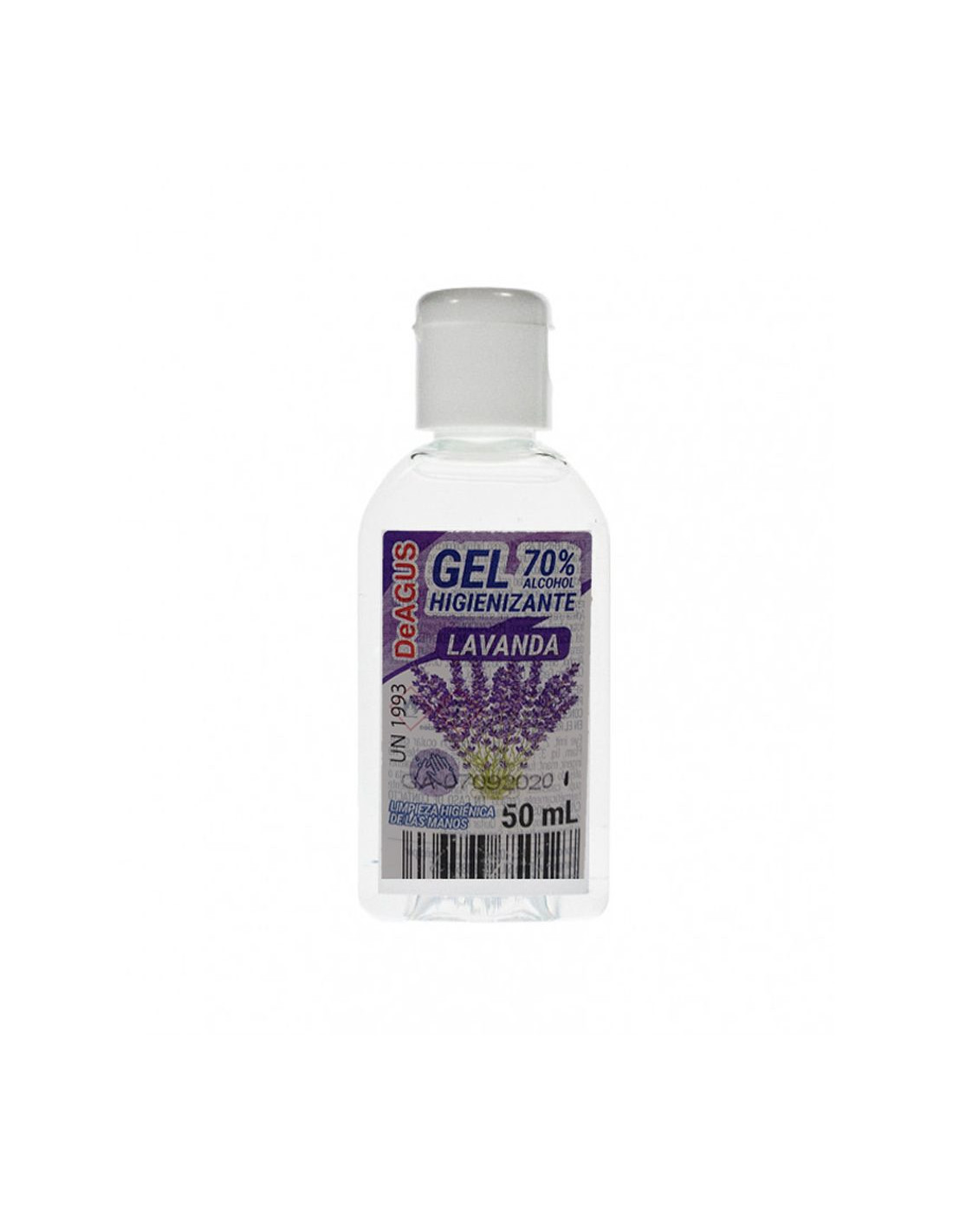 Gel higienizante con aroma a lavanda de 50ml. Contiene 70% de alcohol. Limpieza higiénica de las manos.