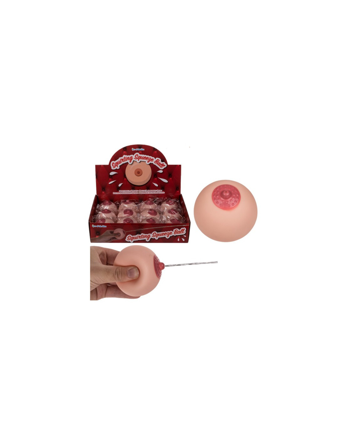 Simula un pecho femenino que lo puedes llenar de agua y al apretarlo salpica agua.