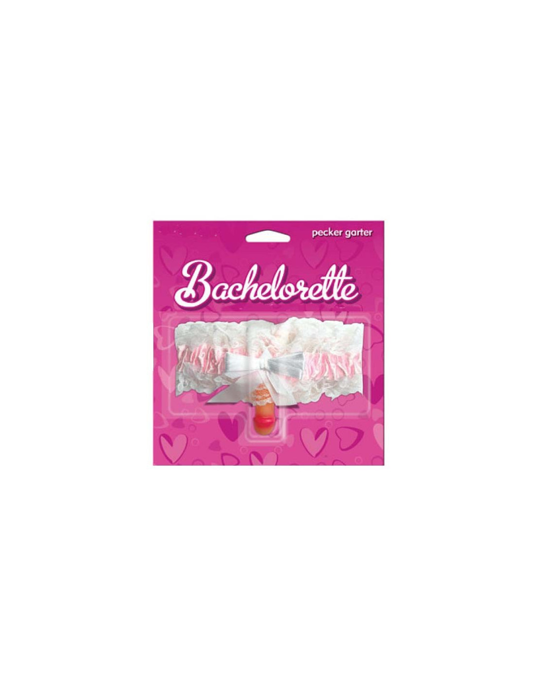 Liga rosa con puntilla blanca, lacito y figura de pene.