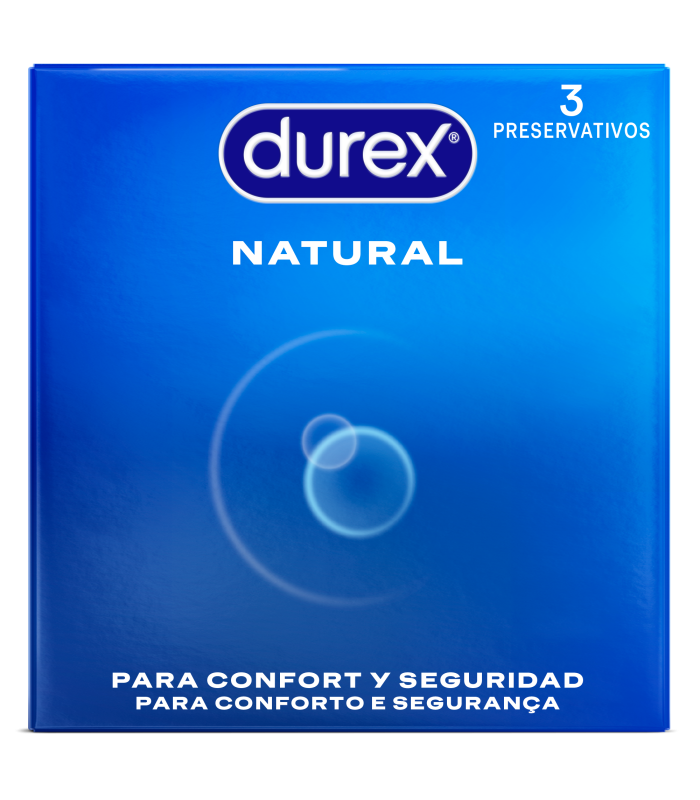 Durex Natural Confort de 3ud. Transparente y lubricado. Son los preservativos clásicos de Durex. Forma anatómica Easy-on.