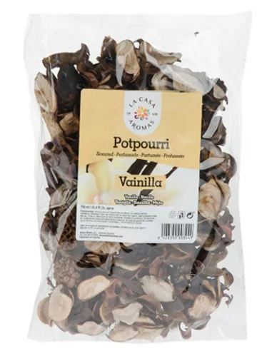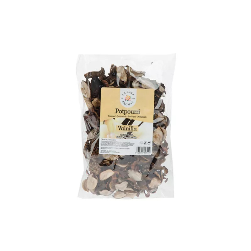 En la bolsita de potpourri vas a encontrar una mezcla de hojas y flores naturales secas y virutas de madera perfumadas con el aroma a vainilla.