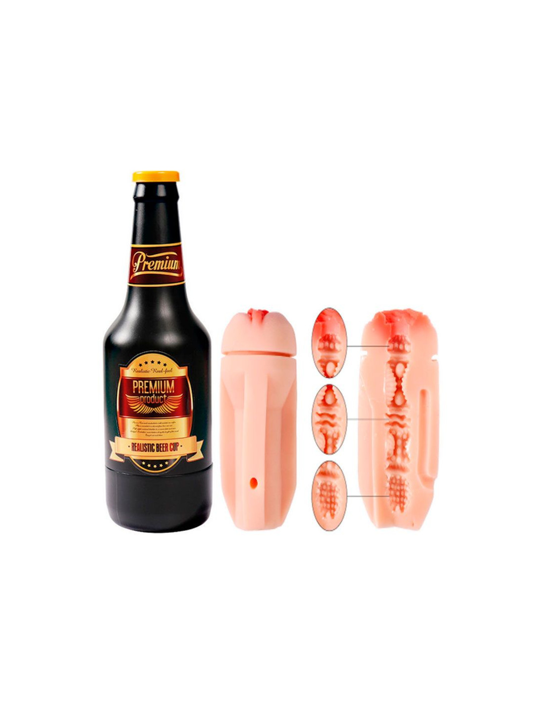 Masturbador masculino con forma de vagina en botella de cerveza premium