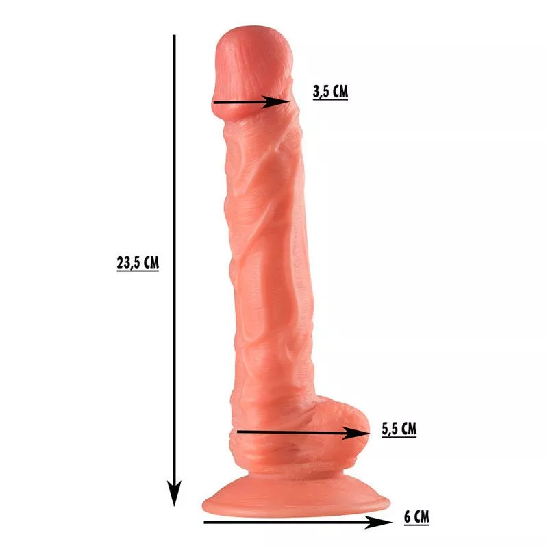 Dildo Ultra Realista Lance's con forma de pene y testículos, diseñado para proporcionar una experiencia de placer personal intensa y auténtica. Fabricado en PVC de grado médico, su tacto imita la piel real para una sensación ultrarealista. La ventosa en la base garantiza fijación segura en cualquier superficie, y su resistencia al agua (IPX7) permite diversión en la ducha o bañera. Ideal para sex shops, comercio vending y mayoristas online que buscan productos de alta rotación y aceptación. Añade este juguete erótico y accesorio íntimo a tu catálogo a precios económicos y con calidad garantizada.
