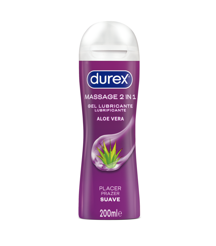 Durex Play Massage Aloe Vera 2 en 1, masaje y lubricante, utilízalo como desees en cada momento para un masaje relajante o para lubricar tus zonas íntimas. Contiene Aloe Vera que le aporta al acto suavidad debido a sus propiedades hidratantes.